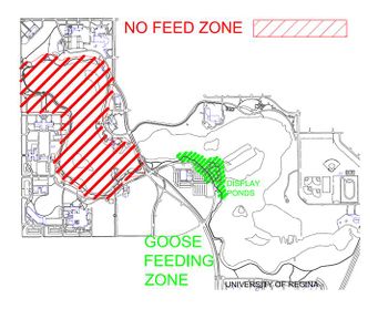 [[File:Goose_Map.jpg| | [[File:Goose_Map.jpg|350px|left|thumb|A map of Wascana Park indicating where to feed the geese.]] | ||